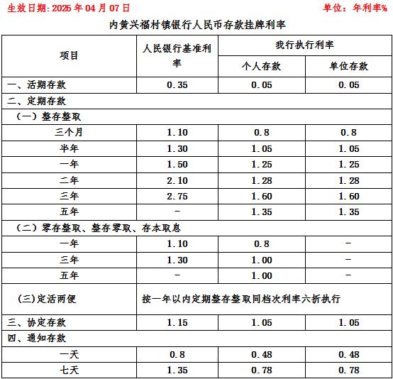内黄兴福村镇银行关于利率调整的公告