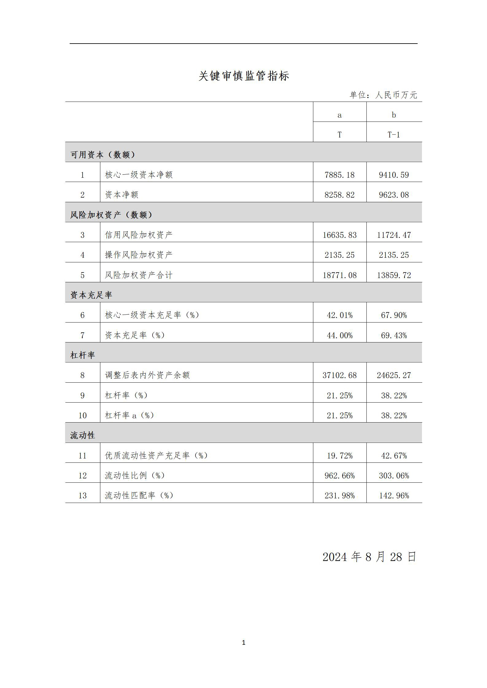 公司为非国内系统重要性银行,根据《商业银行资本管理办法》(以下简称“办法”),公司属于第三档商业银行,按照办法附件23《第三档商业银行资本监管规定》,本期公司需披露的报表如下: